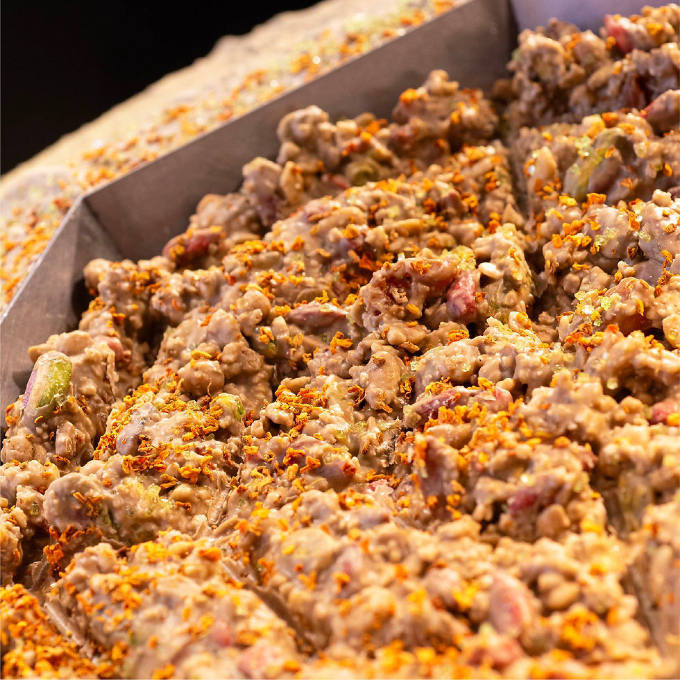 小楽園のチョコレート銀河には5種の天体があり、それぞれ違うお味のチョコレートから成っております。その銀河地帯から掘削した、“天体のかけら”と“コスモスパール”をお詰めして、皆様のお家までお届けいたします。