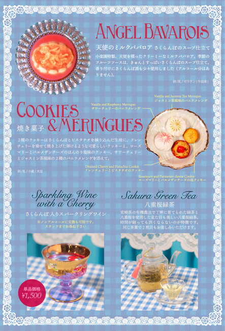 自家製の天使を模ったミルクババロアのフルーツソースが、きゅんとすっぱいさくらんぼのスープになりました。